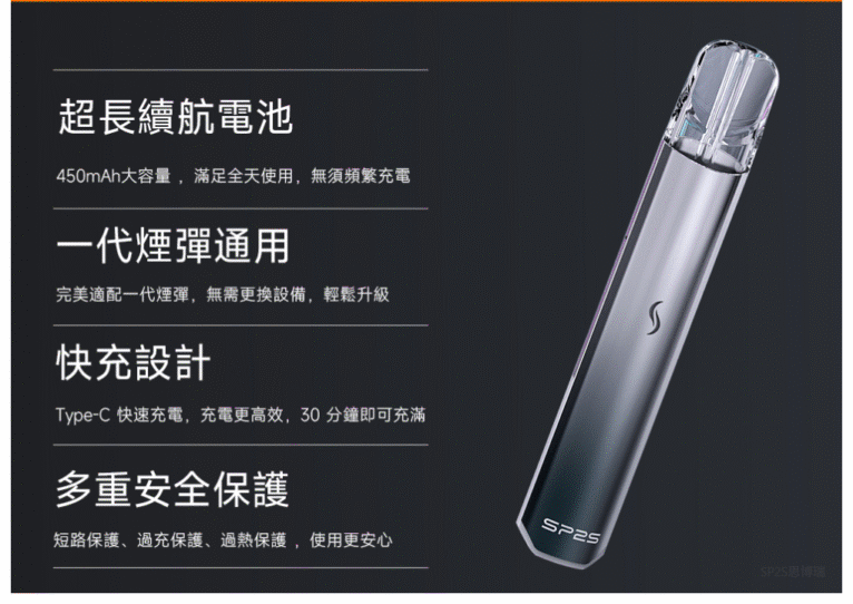 SP2S是一個專注於提供電子菸研發與售賣的品牌,其產品以兼容性與穩定性在市場上受到關注。SP2S國際版主機是品牌面向廣泛用戶群設計的一款一代通用電子煙主機,核心特點在於其對市面上多種第一代煙彈的廣泛支持。SP2S國際版主機是一款以「廣泛兼容」為主要特點的電子煙主機,其對多品牌一代煙彈的支持、金屬機身質感、Type-C快充及LED燈效設計,滿足了部分用戶電子菸主機通用性、耐用度與個性化外觀的需求。